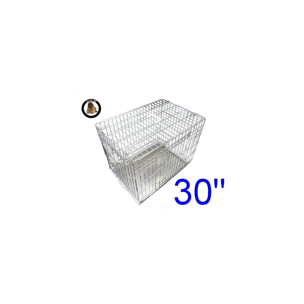 Ellie-Bo Dog Puppy Cage Medium 30 inch Silver Folding 2 Door Crate with Non-Chew Metal Tray