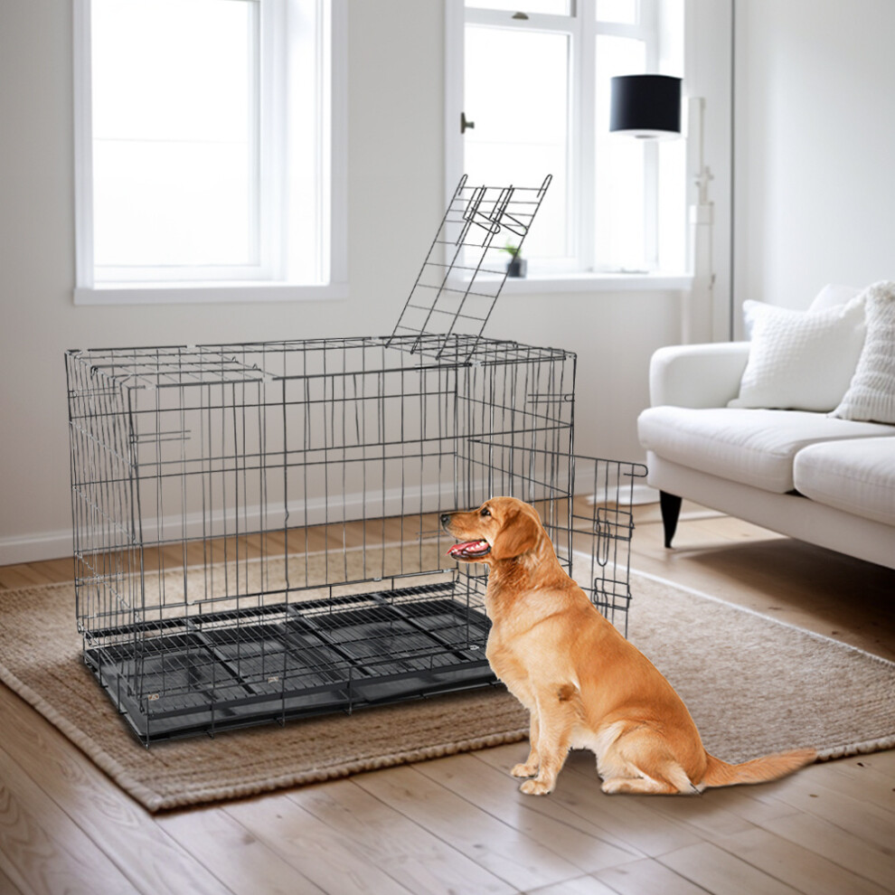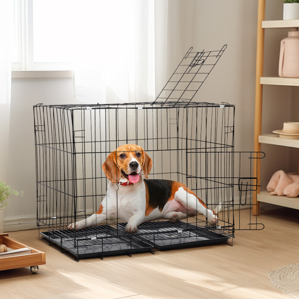 100CM Large Dog Cage Puppy Cat Pet Crate Carrier Small Medium Big Metal Cages