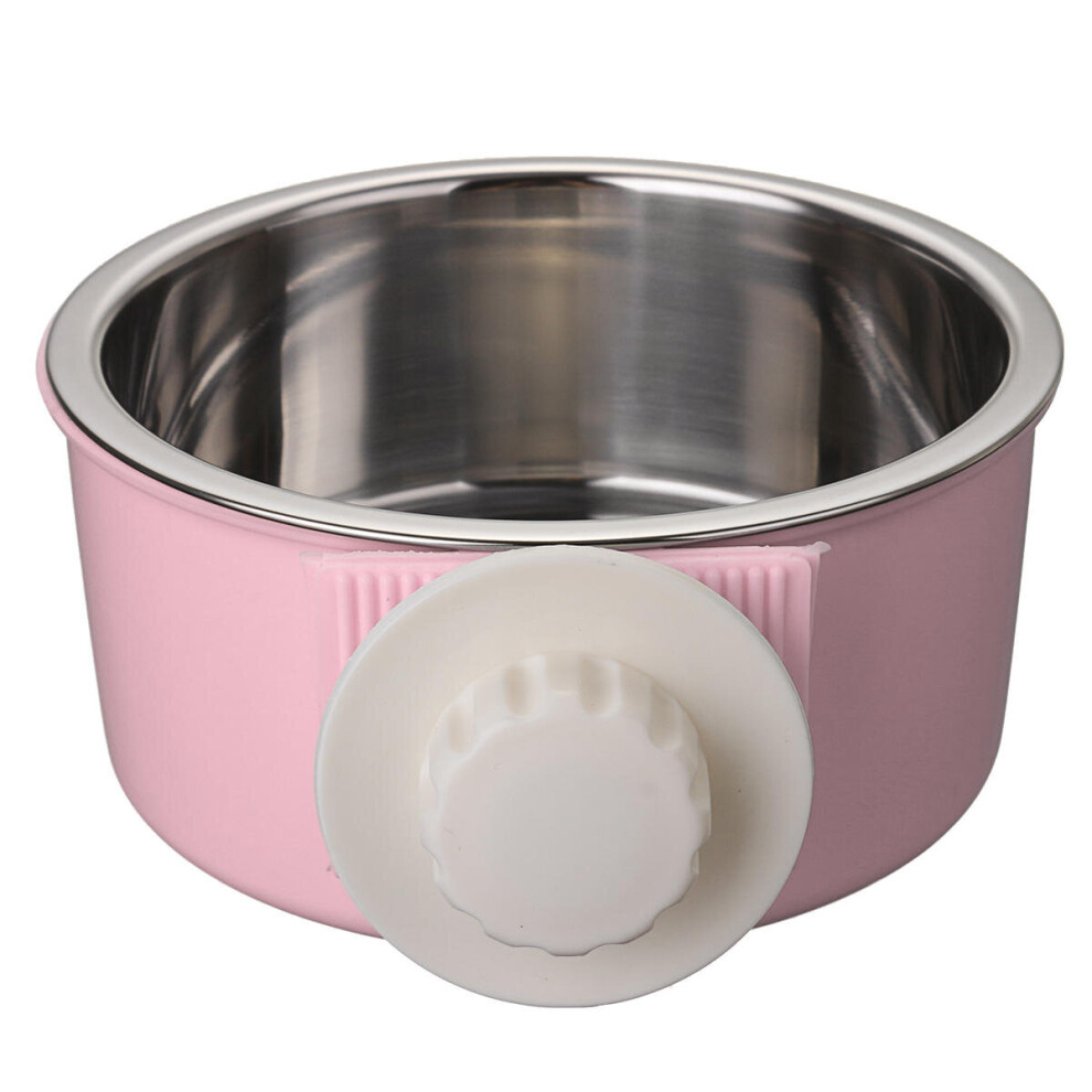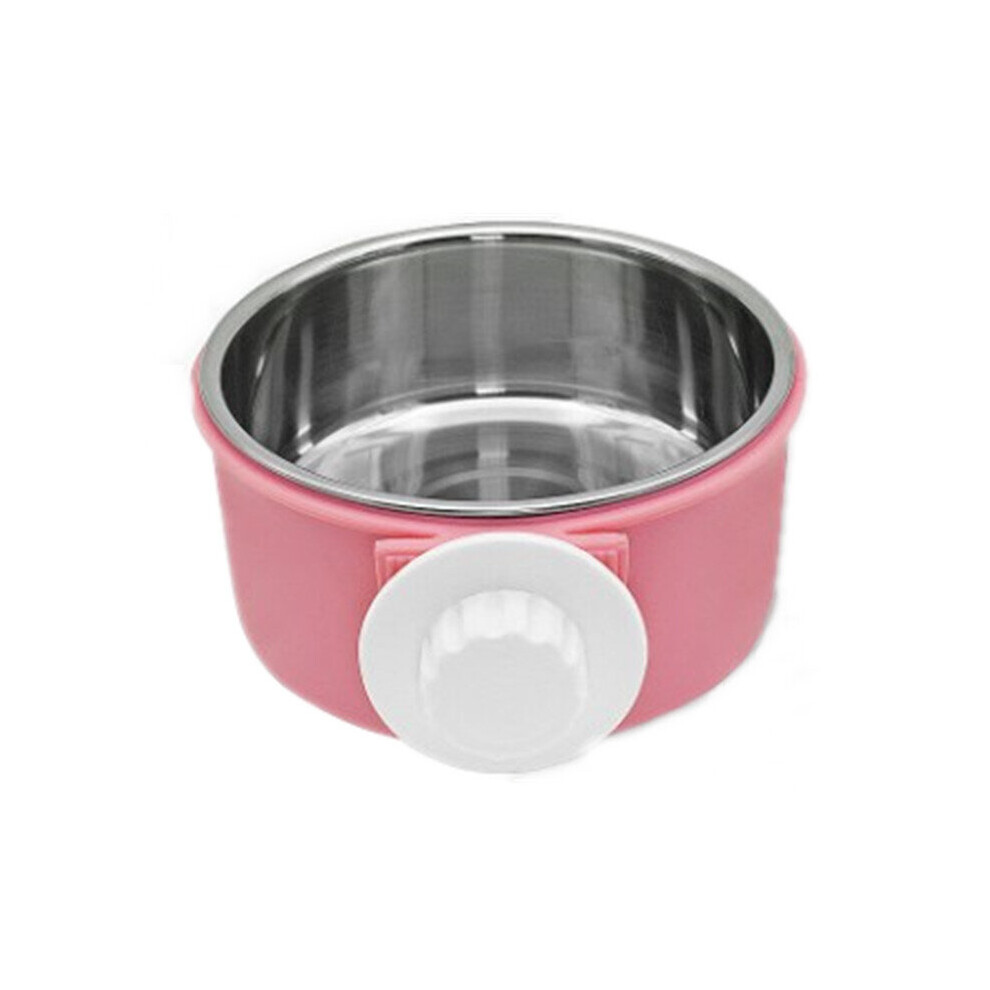 (Pink, L) Stainless Steel Dog Cat Bird Puppy Pet Hanging Cage Bowl Feeding Water Food