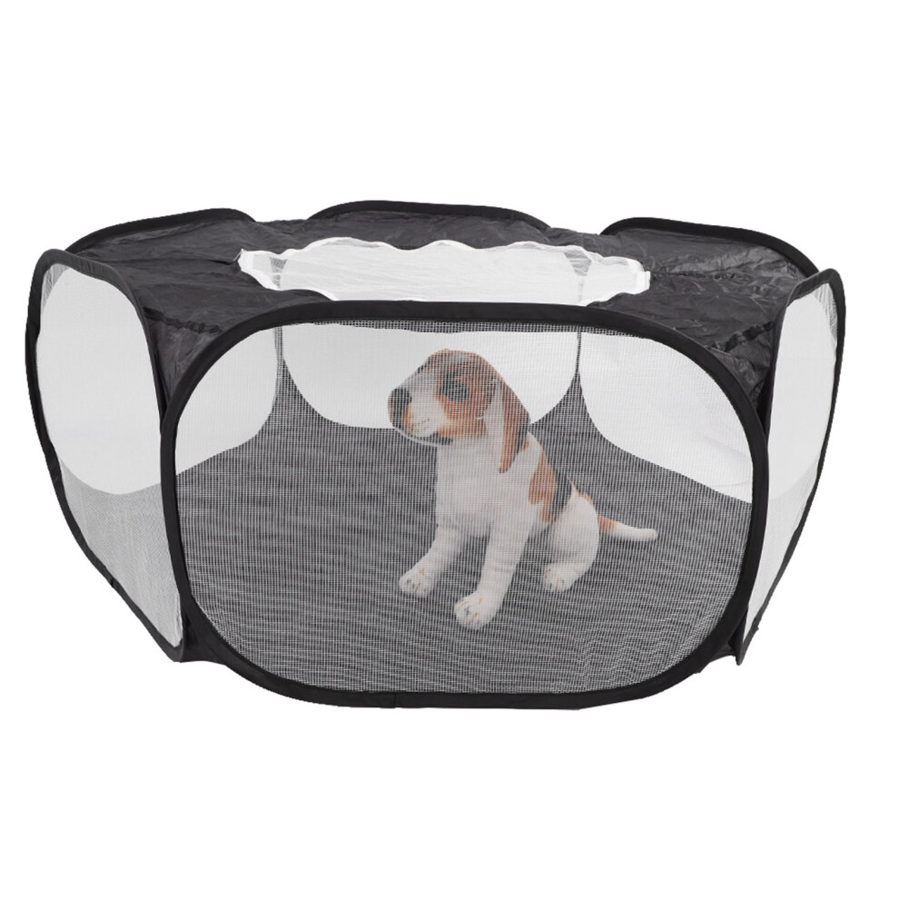 Portable Small Pet Animals Playpen Transparent Puppy Cat Rabbit Cage Tent for OutdoorBlack