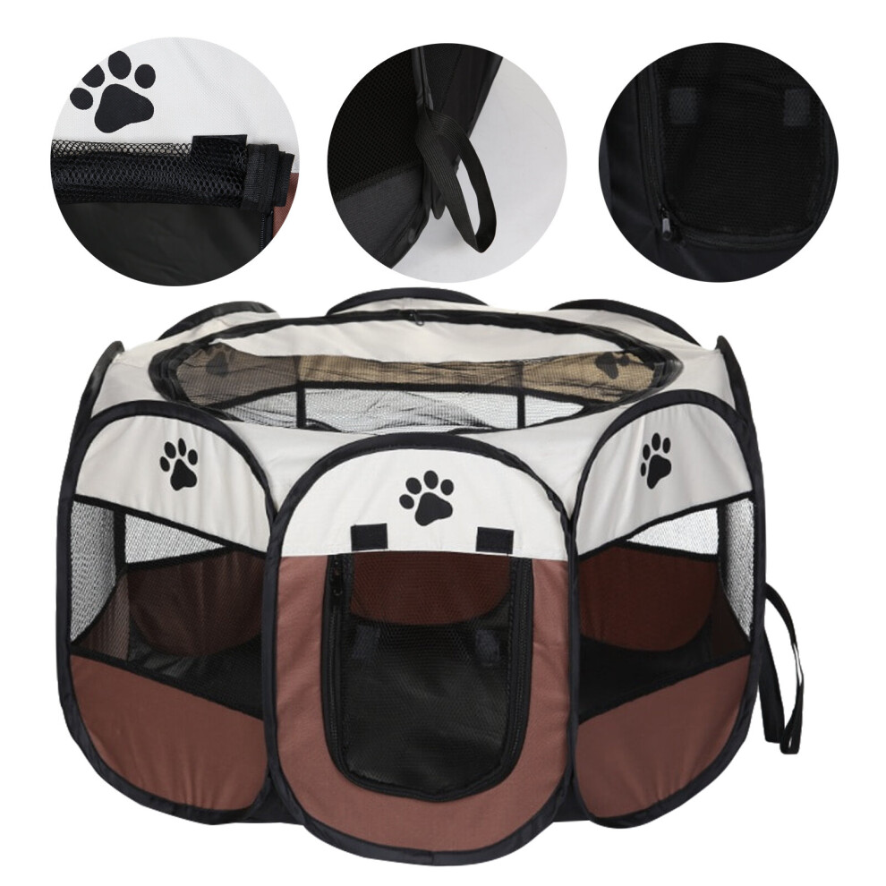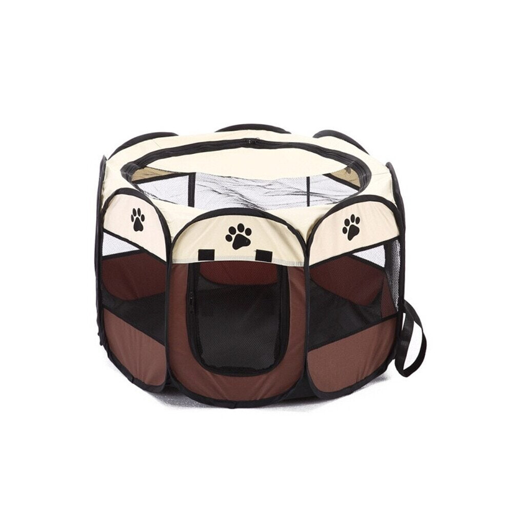 (Coffee, M) Fence Octagonal Pet Tent Folding Outdoor Cage Puppy Kennel For Dogs Cats Fences & Pens