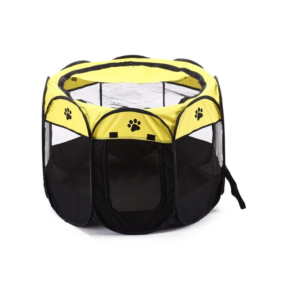 (Yellow, S) Fence Octagonal Pet Tent Folding Outdoor Cage Puppy Kennel For Dogs Cats Fences & Pens
