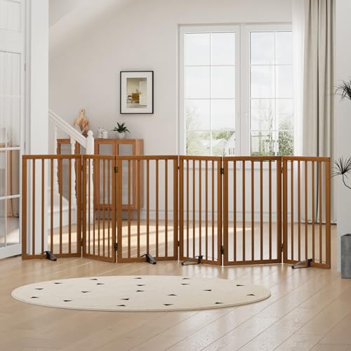 Tall Dog Gates for Doorways, Foldable Dog Gate Indoor,Freestanding Pet Gates for Doorways Bedroom, Puppy Gate with Metal Support Feet, Room Divider,6 Panels (walnut)
