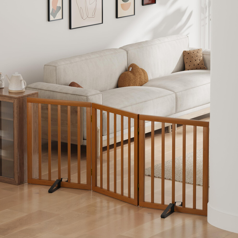 Tall Dog Gates for Doorways, Foldable Dog Gate Indoor, Freestanding Pet Gates for Doorways Bedroom, Puppy Gate with Metal Support Feet, Room Divider,3 Panels (brown)
