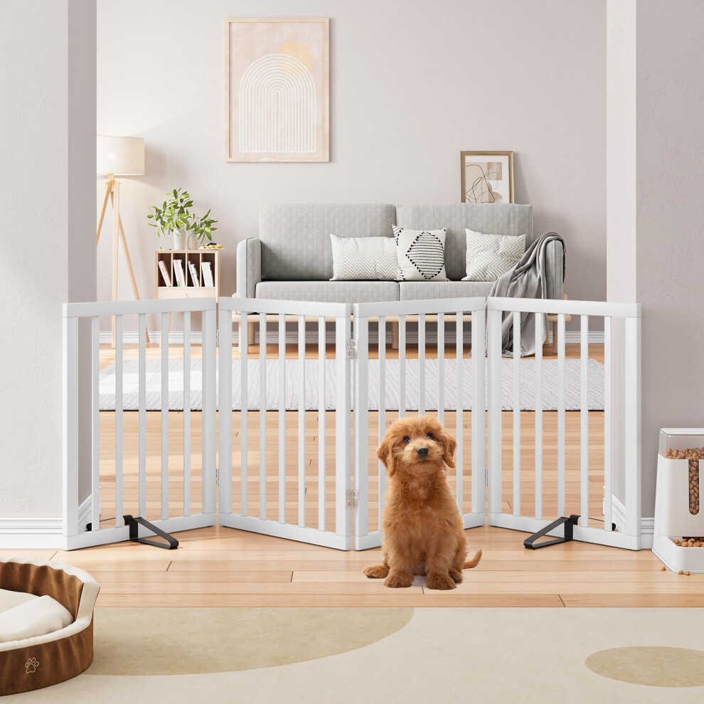 Tall Dog Gates for Doorways, Foldable Dog Gate Indoor, Freestanding Pet Gates for Doorways Bedroom, Puppy Gate with Metal Support Feet, Room Divider,4 Panels (white)