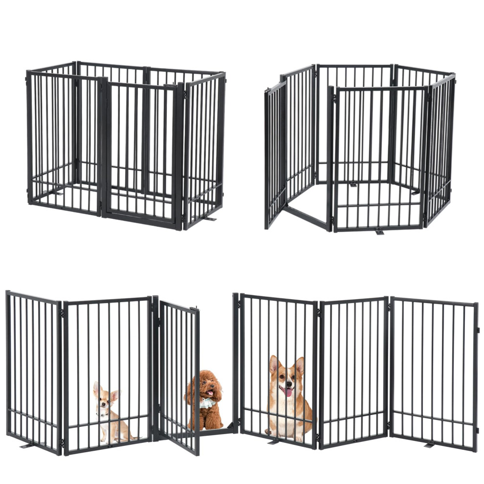 Dog Gates for Doorways, Foldable Dog Gate Indoor, Freestanding Pet Gates for Doorways Bedroom, Puppy Gate with Metal Support Feet, Room Divider 6 Panels (Black)
