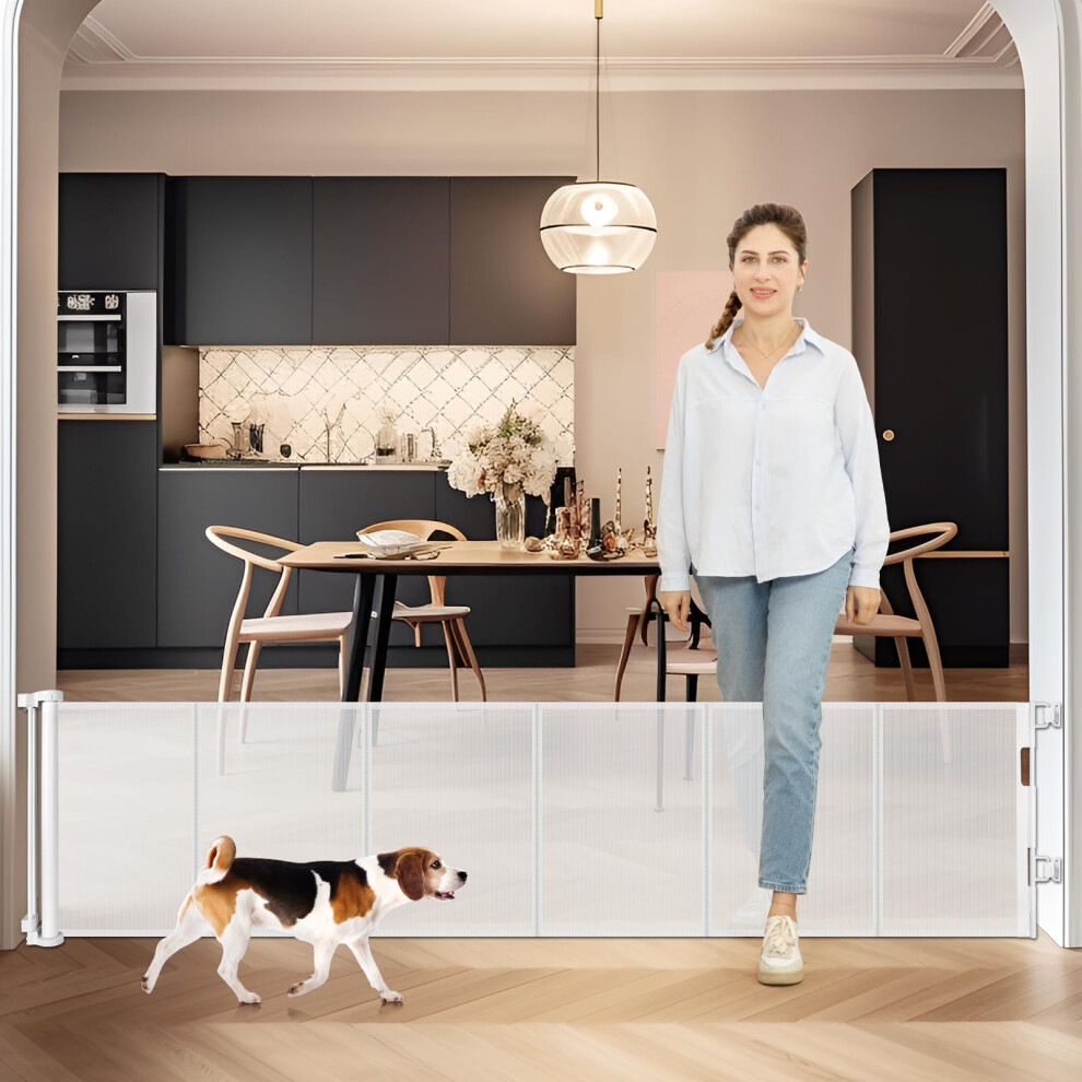 24 Inch Tall x 75 Inch Extra Wide Retractable Dog Gate for The House, Short Dog Gate to Step Over, Reinforced Mesh Puppy Gate for Doorways, Step Over