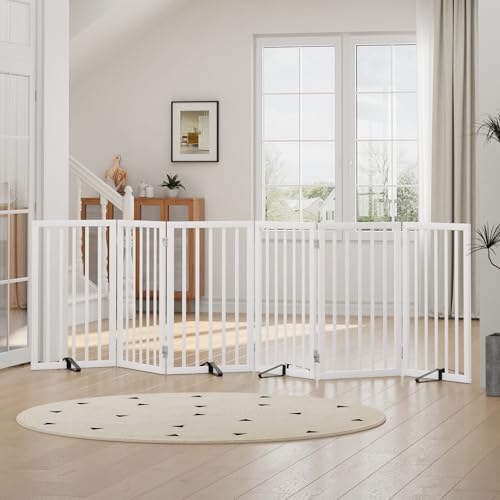 Tall Dog Gates for Doorways, Foldable Dog Gate Indoor, Freestanding Pet Gates for Doorways Bedroom, Puppy Gate with Metal Support Feet, Room Divider,6 Panels (White)