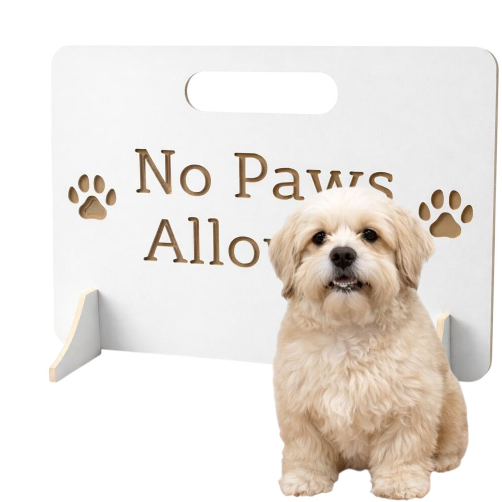 White No Paws Wooden Stopper Barrier ? Freestanding Dog Stopper for Stairs | Dog Barrier Gate | Portable Wooden Pet Stopper | Puppy Gate for Stairs