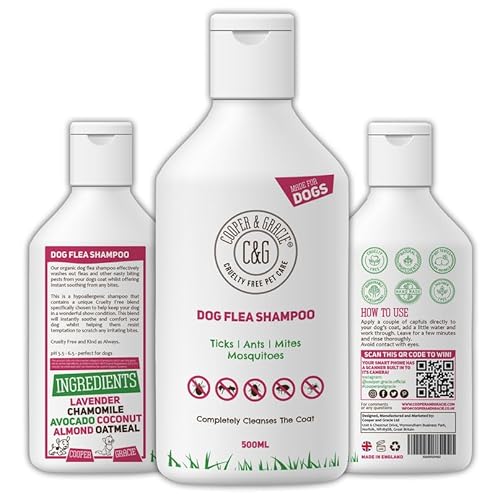 Cooper And Gracie C&G Cruelty free Pet Care Flea Shampoo For Dogs 500ml - Sensitive Itchy Skin Dog and Puppy Grooming - Medicated Fleas Treatment, Lavender