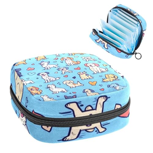 Anna Cowper Period Bag Sanitary Napkin Storage Bag, Menstrual Pad Zipper Bag Portable Feminine Care Tampon Bags for Women Girl Daily Use Outdoor Travel, Funny Dogs Puppy