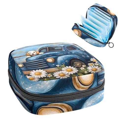 Anna Cowper Period Bag Sanitary Napkin Storage Bag, Menstrual Pad Zipper Bag Portable Feminine Care Tampon Bags for Women Girl Daily Use Outdoor Travel, Truck Puppy Daisies