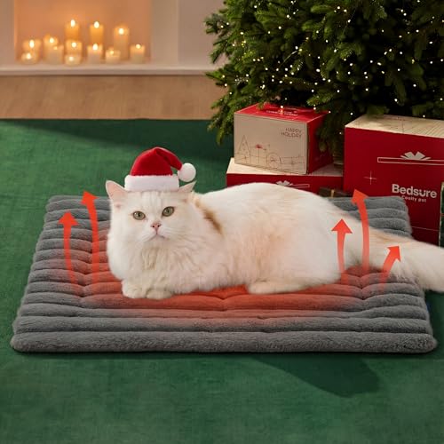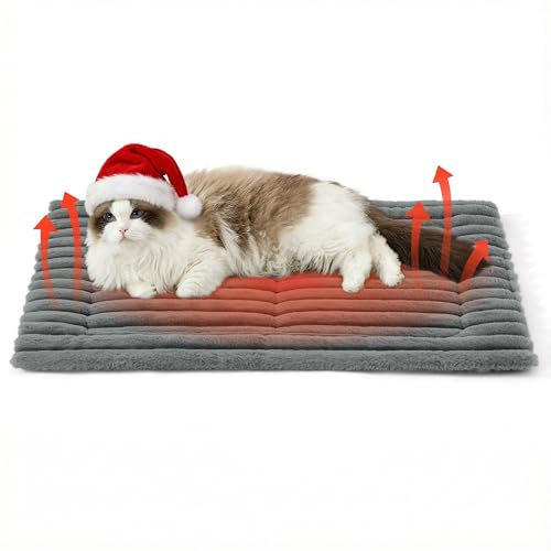 Bedsure Self Heating Cat Bed Mat - 76x50 cm Washable Fleece Warm Cat Blanket with Non skid Bottom, Meduim Dog Crate Mattress for Puppy, Warming Pet Pad, Grey