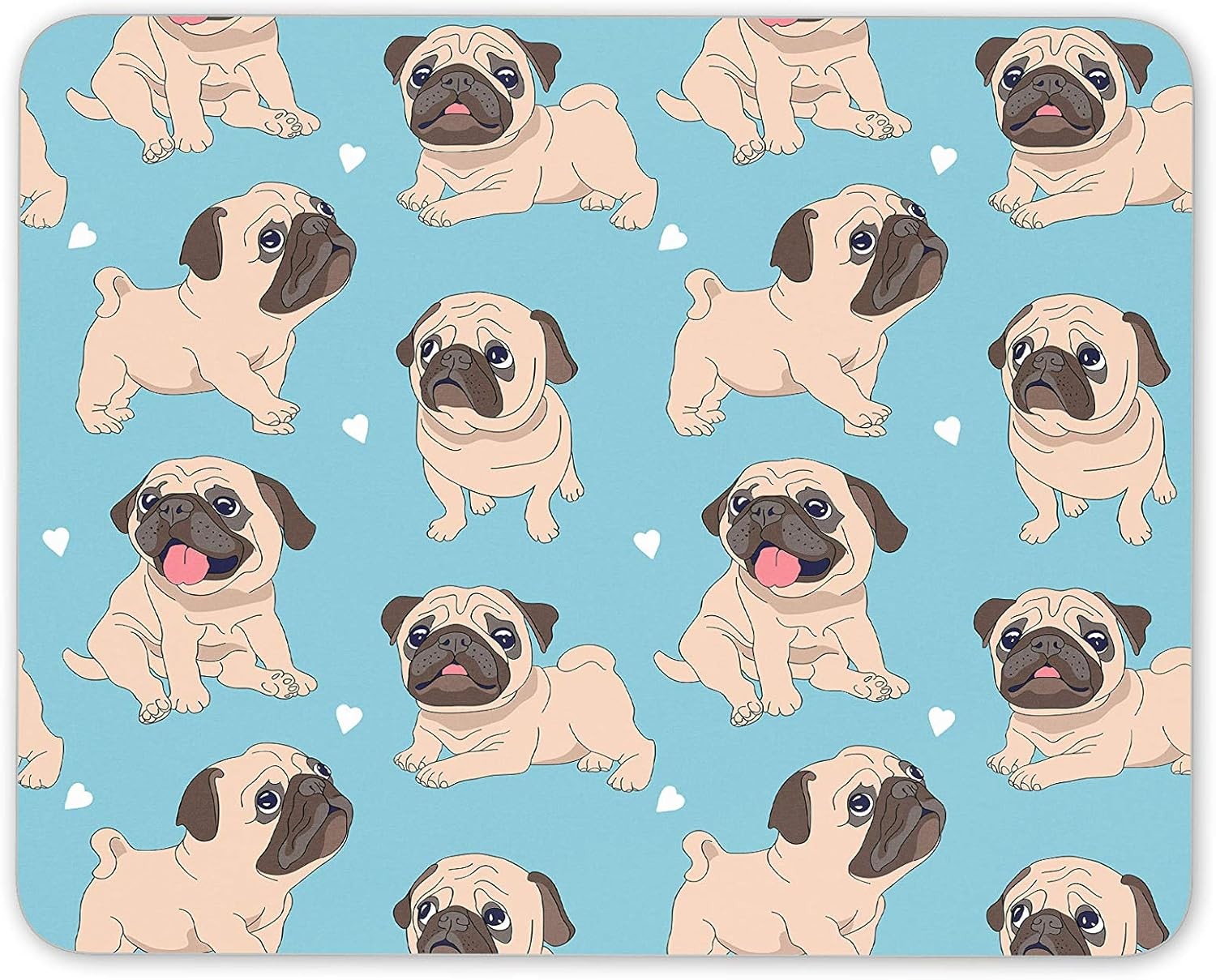 Destination Vinyl Ltd Cartoon Pug Dogs Mouse Mat Pad - Puppy Blue Kids Hearts F