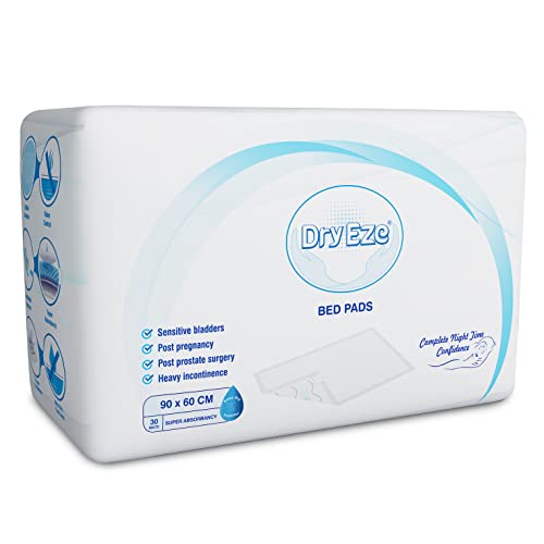 DryEze Super Absorbent Disposable Incontinence Bed Pads for Mattress Furniture Sofa Chair Protector Pet Training, Puppy Pad - High Absorbency Mats (90x60 cm (Pack of 30))