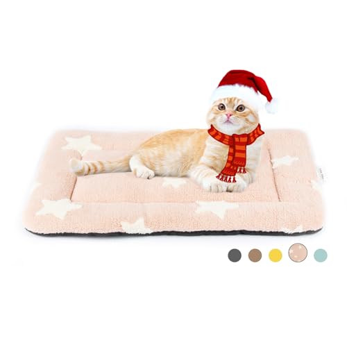 MORA PETS Cat Bed Mattress Small Flat Dog Crate Mat 56 x 33cm Washable Pet Bedding Soft Puppy Cushion Anti-slip Kitten Bed Puppy Pillow Pad with Star Pattern Pink