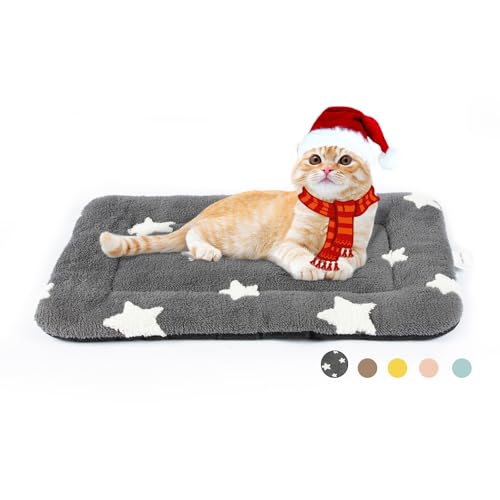 MORA PETS Cat Bed Mattress Small Flat Dog Crate Mat 56 x 33cm Washable Pet Bedding Soft Puppy Cushion Anti-slip Kitten Bed Puppy Pillow Pad with Star Pattern Grey