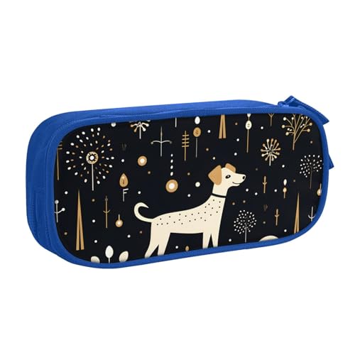 Nexawaveo Large Capacity Pencil Case Organizer 8.3x5.9in Flower Adorned Puppy Dark Blue Pen Pouch for School Office Travel