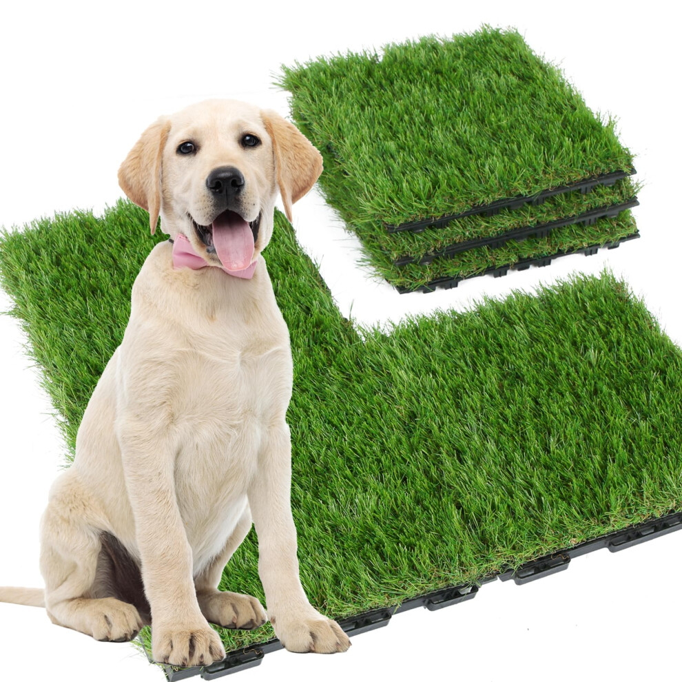Interlocking Fake Grass Tiles for Dog, Self Draining Artificial Turf Square Mat for Patio Balcony Puppy Pets Playpen, 12 inch x 12 inch/6 Piece