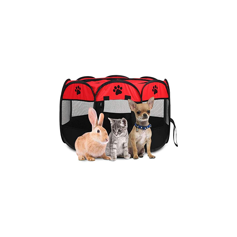 Puppy Playpen Foldable Indoor Outdoor Pet Pen 81 x 45 CM For Dogs Cats Rabbits Guinea Pigs Red