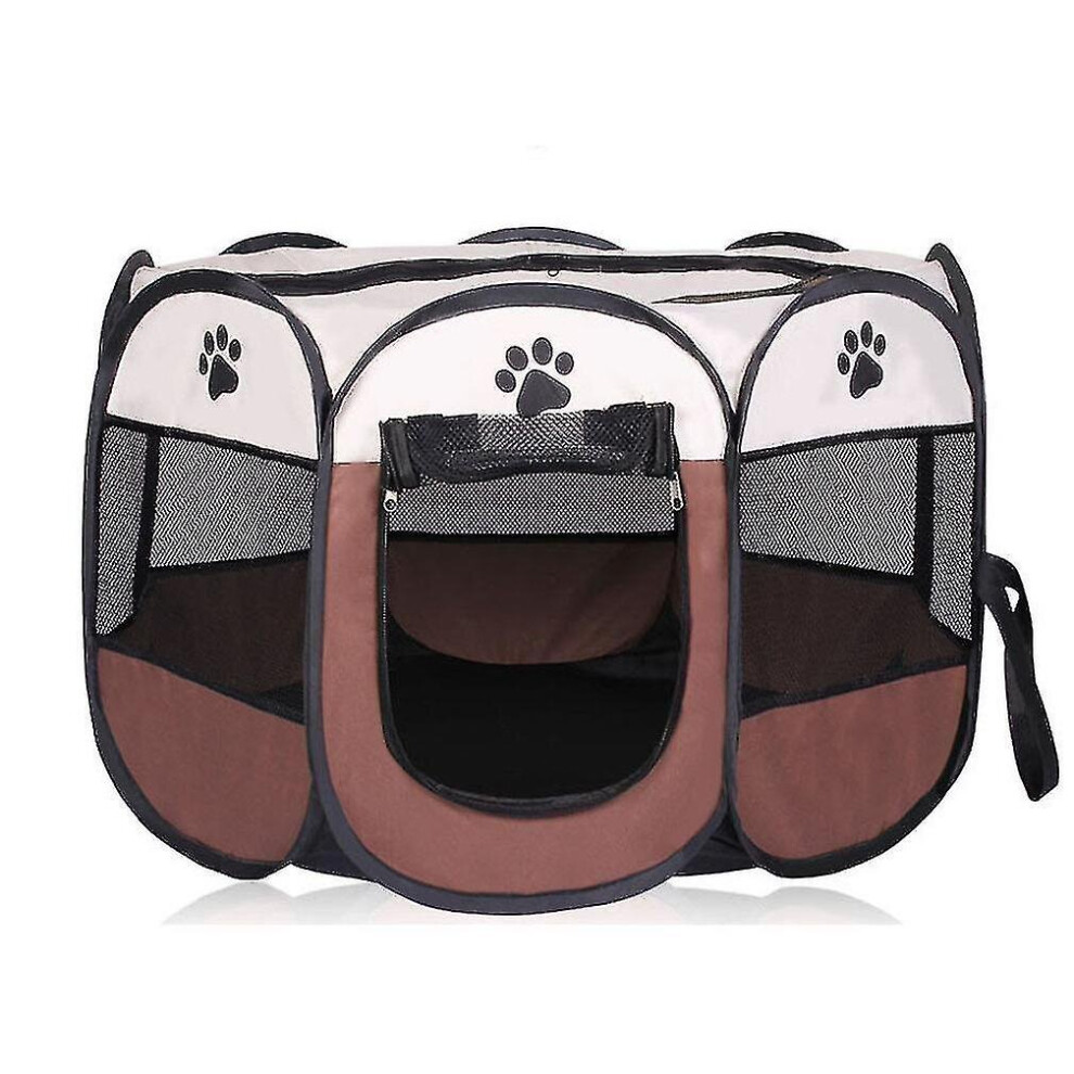 (COFFEE, 91x91x58CM) Portable Folding Pet Tent Dog House Octagonal Cage For Cat Tent Playpen Puppy Kennel Easy Operation Fence Outdoor Big Dogs House