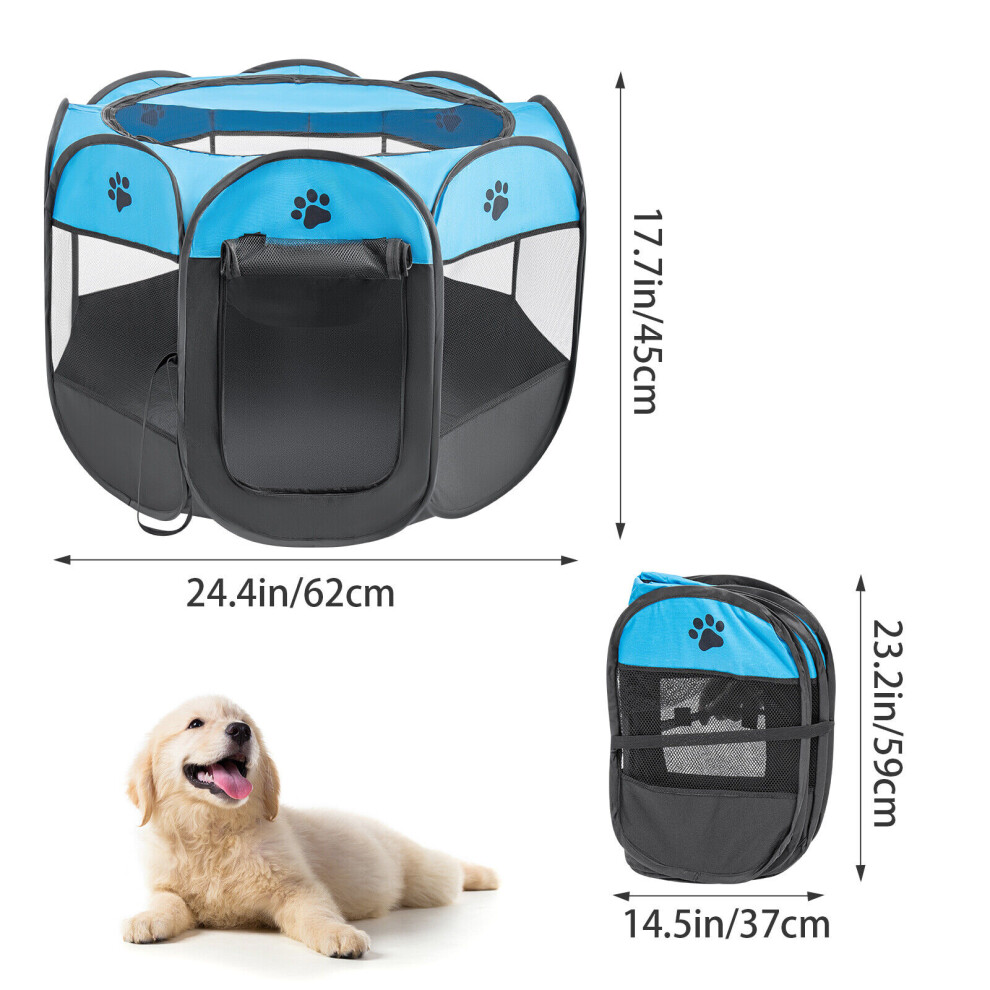 Portable Pet Dog Fence XL Blue Waterproof Oxford Cloth Puppy Playpen For Indoor Outdoor Use Small Cats Dogs Rabbits