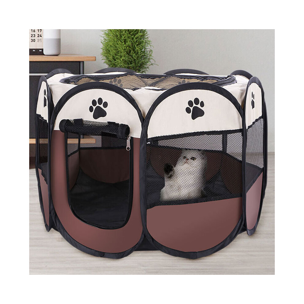 (COFFEE, 74x74x43CM) Portable Folding Pet Tent Dog House Octagonal Cage For Cat Tent Playpen Puppy Kennel Easy Operation Fence Outdoor Big Dogs House