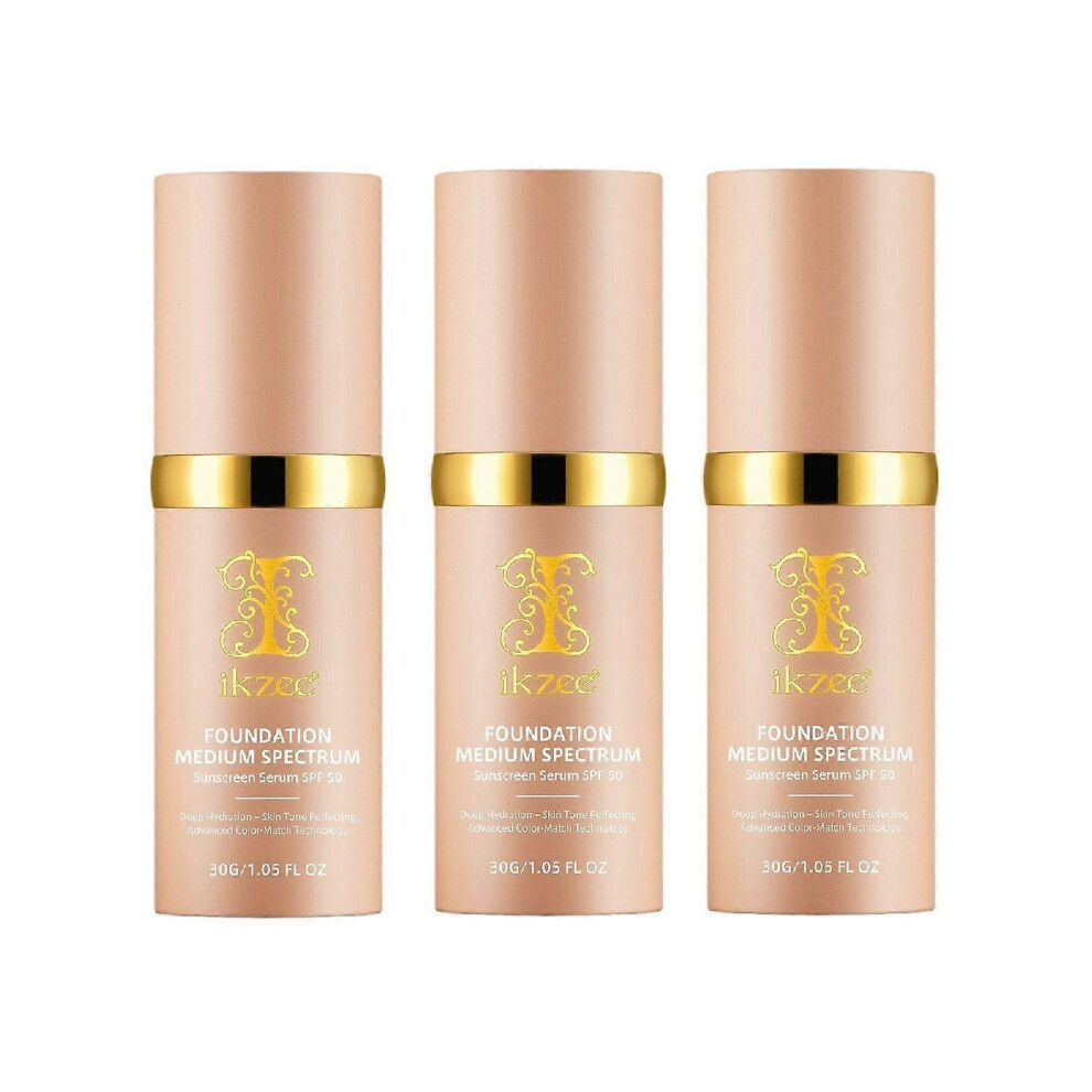 (3Pcs) 4 in 1 Foundation with SPF 50+, Hydrating Color Changing Foundation Longwearing & Waterproof, Medium Spectrum for Gym, Sport, Dancing