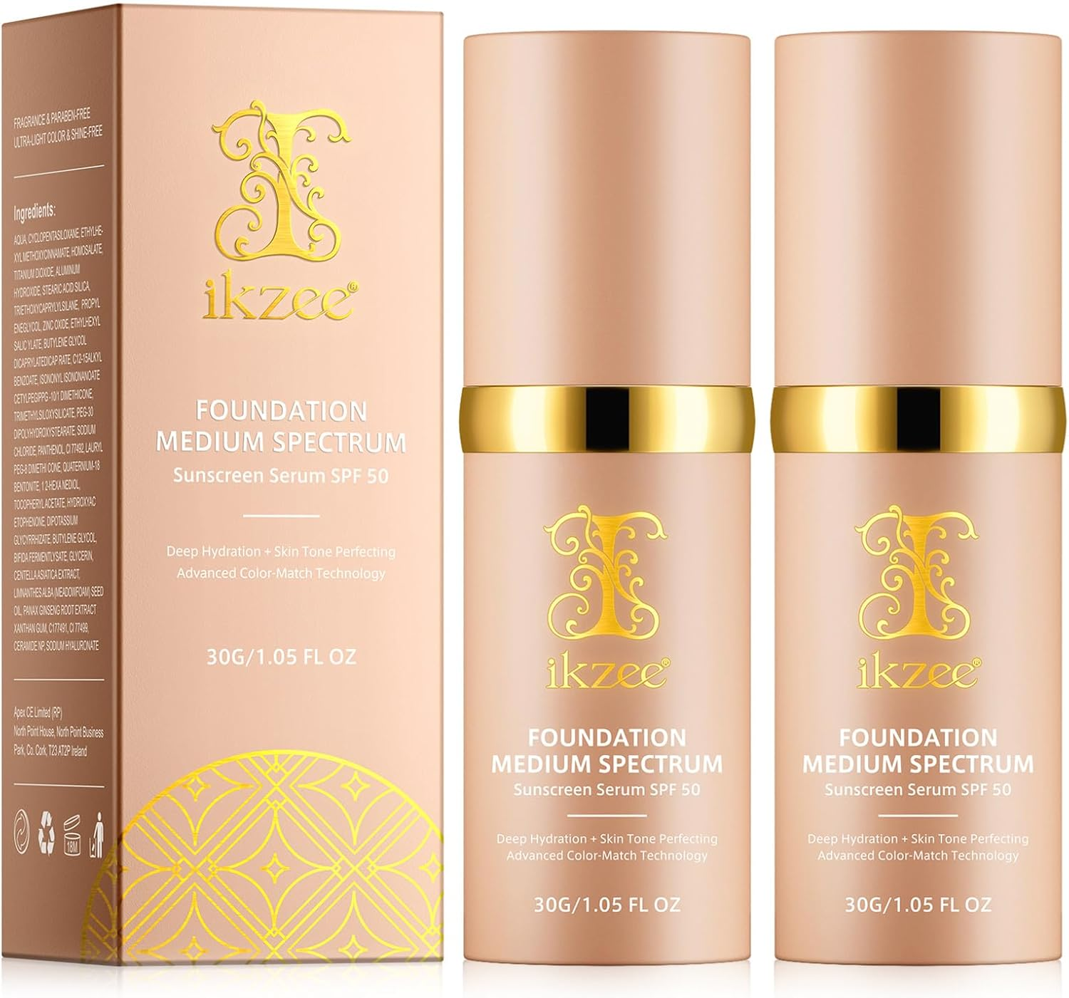 2Pcs 4 in 1 Colour Changing Foundation, SPF50 Medium Spectrum Foundation, Colour