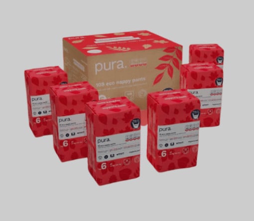 Pura Eco Baby Nappies - Size 6 (14kg+ / 30lbs+), 6 x 18 Nappies (1108 Total)