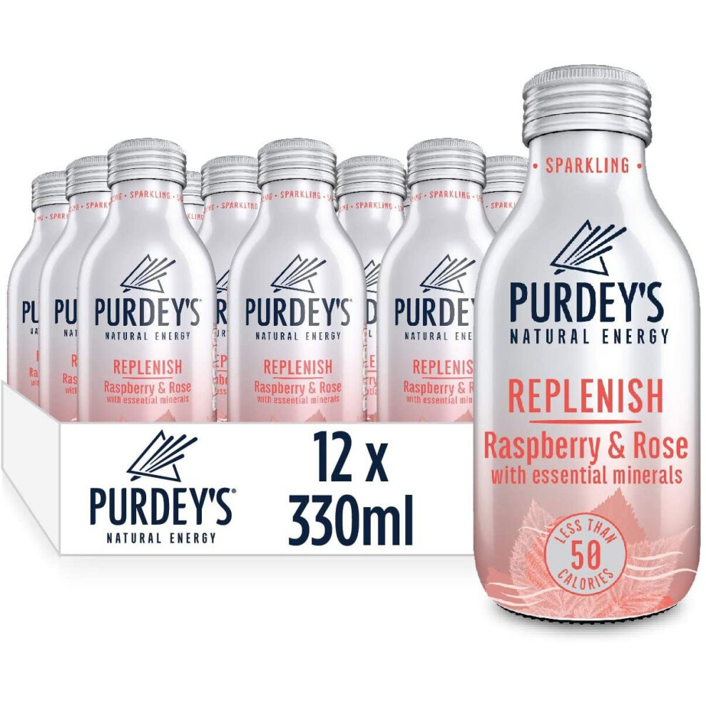 Purdey's Replenish Multivitamin Energy Drink - Raspberry & Rose with Essential Minerals - 12 x 330ml Bottles