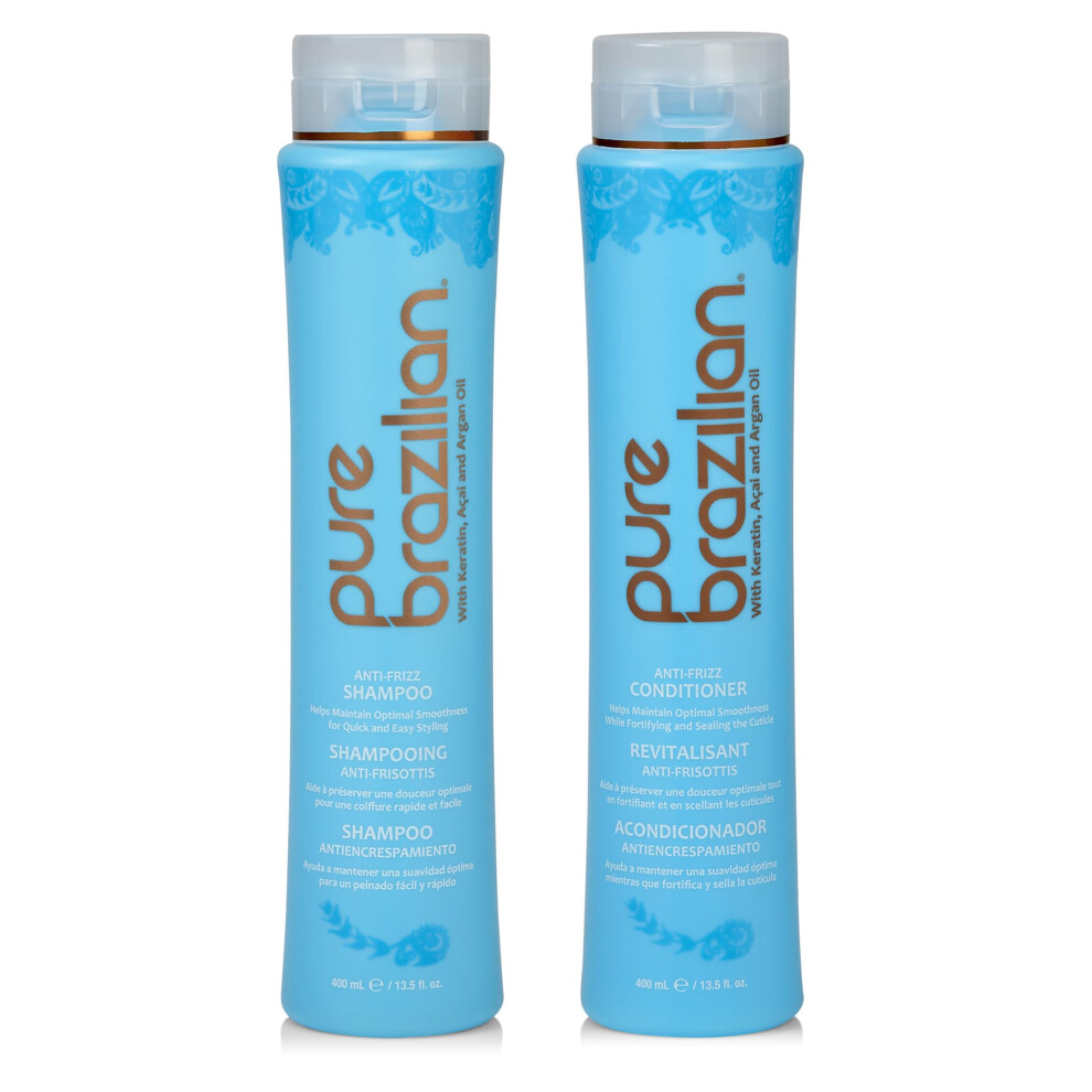 PURE BRAZILIAN Anti Frizz Daily Shampoo & Conditioner - Salt-Free & Color Safe Shampoo & Conditioner Enriched With Keratin Argan Oil and Acai (13.5