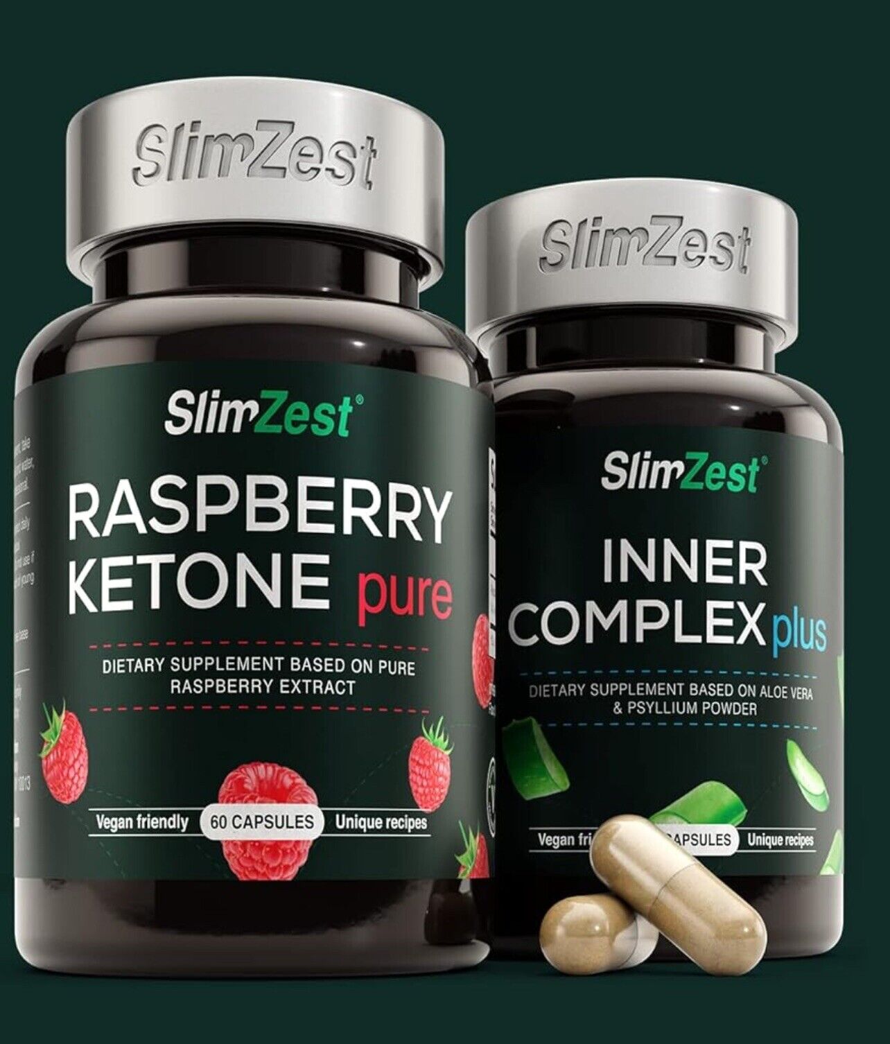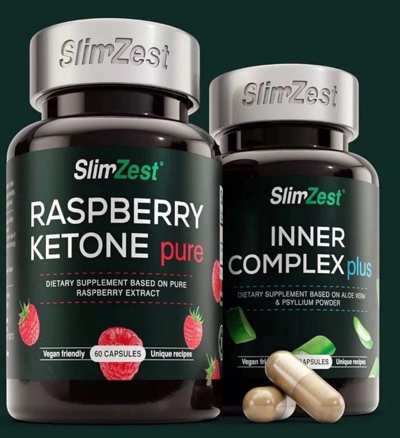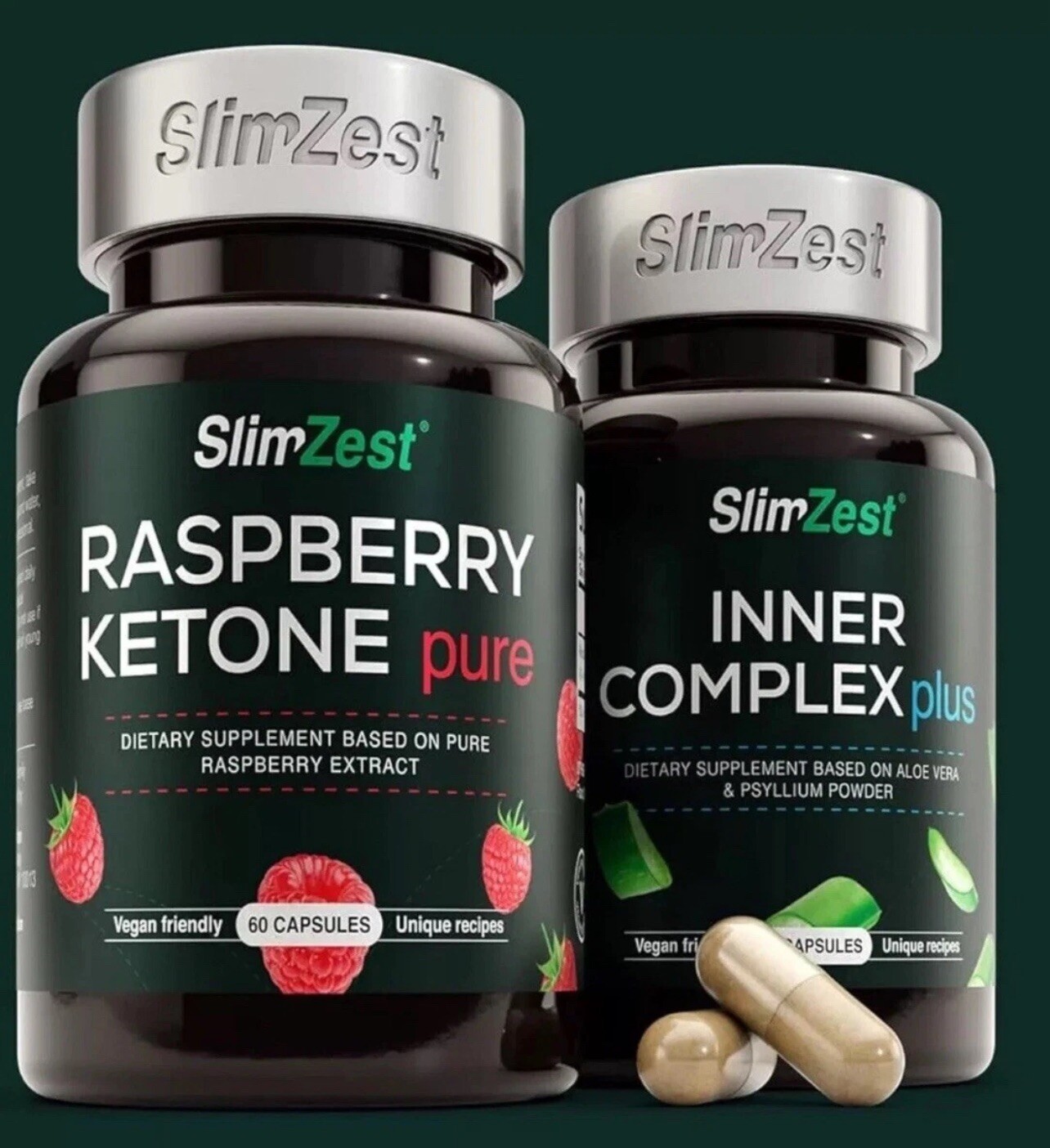 60 Raspberry Ketone Pure Plus + 60 Inner Complex Free Weight Loss Dieting Vegan