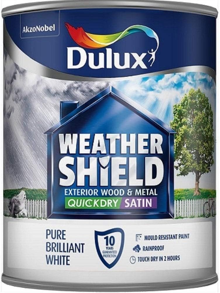 Dulux Weather Shield Quick Dry Satin Paint, 750 ml - Pure Brilliant White - Packaging May Vary