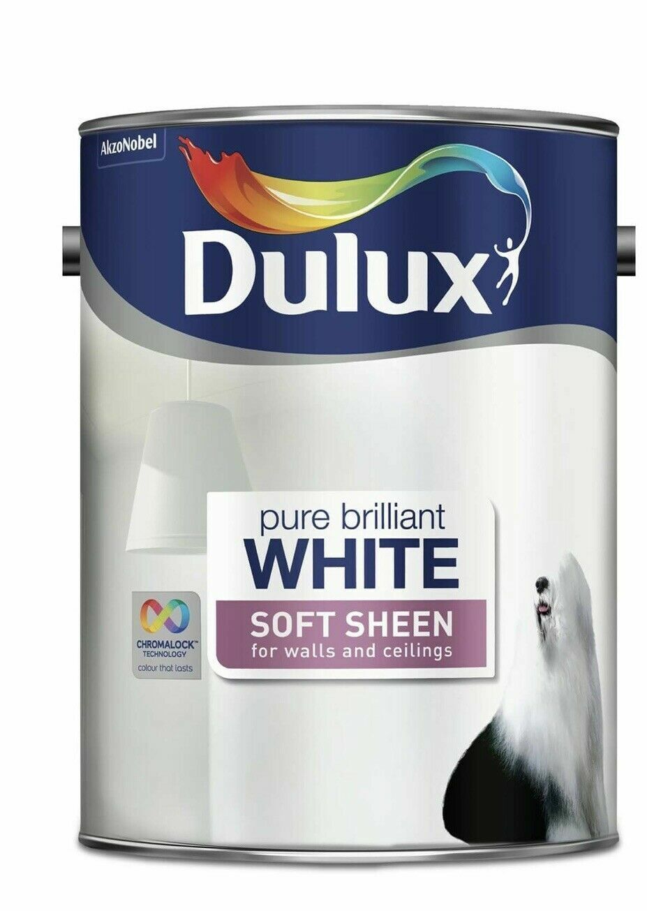 Dulux Soft Sheen Emulsion Paint For Walls And Ceilings Pure Brilliant White 2.5
