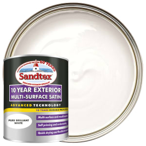 Sandtex 10 Year Multi Surface Exterior Satin - Pure Brilliant White - 750ml