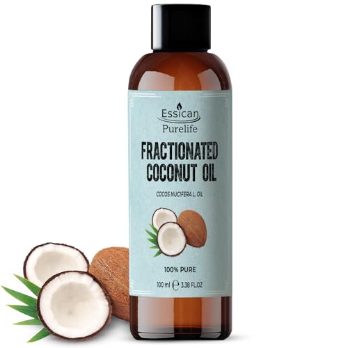 Essican Purelife, Pure Coconut Oil Liquid, 100ml MCT Fractionated Coconut Oil for Skin, Hair & Lip, Carrier Oils for Essential Oils Mixing & Massage, Supports Healthy Hair Growth & Hydrated Skin