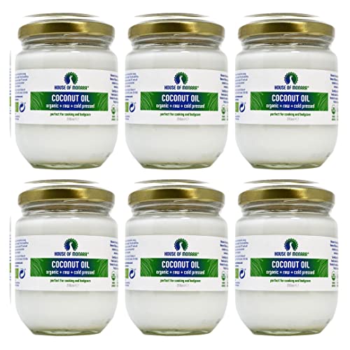 House of Monara Pure Organic Coconut Oil for Hair, Skin and Body, 1200ml (200ml x6 Packs), white