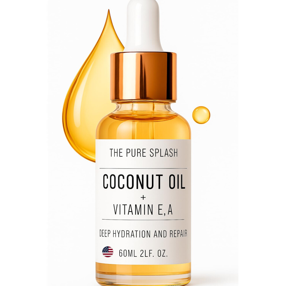 THE PURE SPLASH Coconut Oil with Vitamins E and A - Deep Hydration & Skin Nourishment | Lightweight Non-Greasy Formula for Face Body & Hair | 60ml