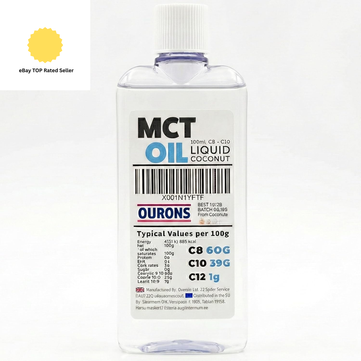 Premium MCT Oil C8-C10: 100Ml Pure Fractionated Coconut Oil for Keto Energy & W