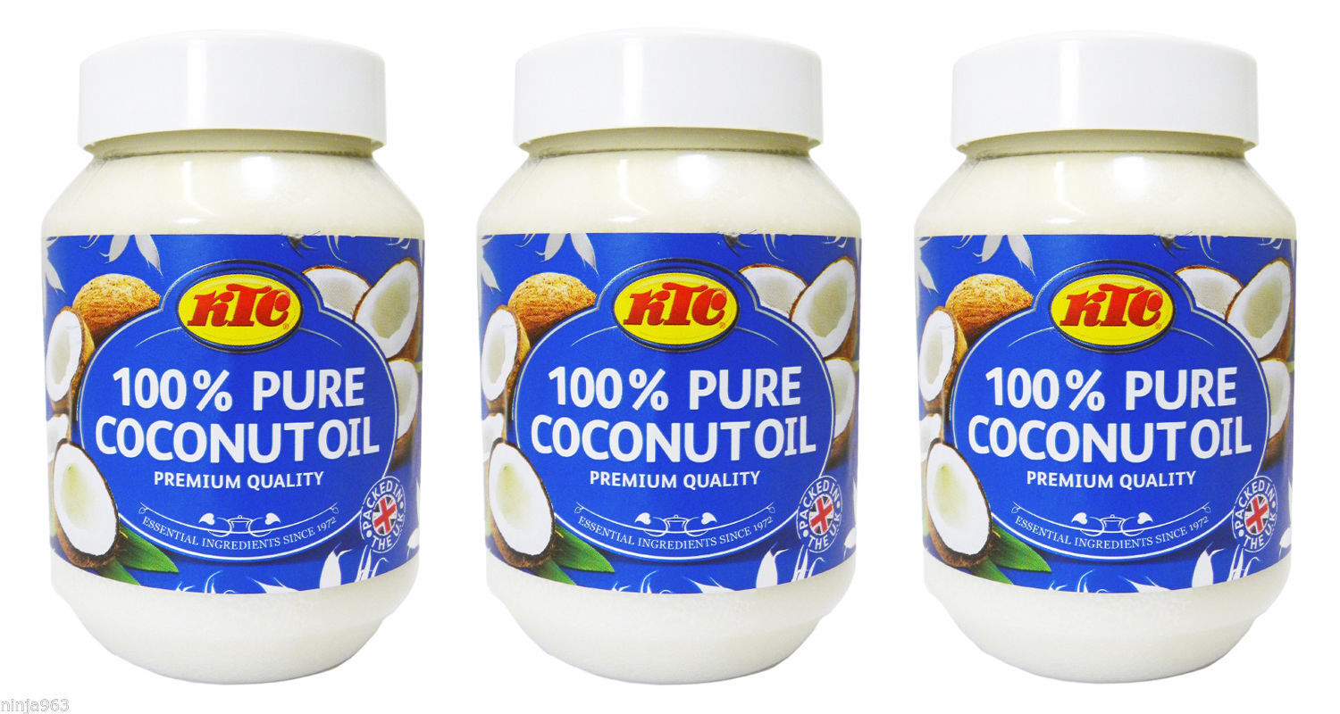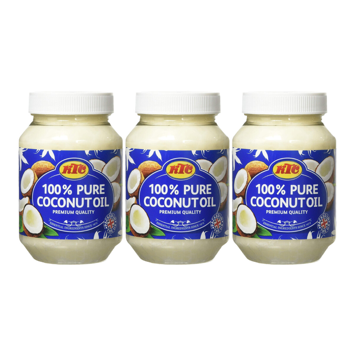 3 x KTC 100% Pure Coconut Oil - Edible, Cooking, Hair & Skin Moisturiser - 500ml