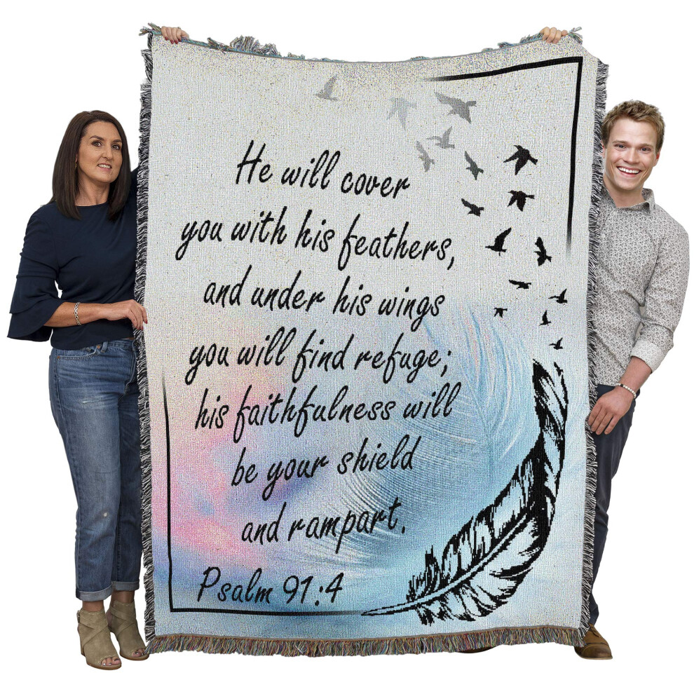 Pure Country Weavers Under His Wings You Will Find Refuge Blanket - Scriptures - Psalm 91:4 - Religious Gift Tapestry Throw Woven from Cotton - Made i