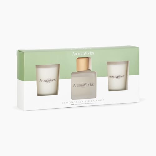 AromaWorks Lemongrass & Bergamot Luxury Gift Set, Soy Wax Candle and Reed Diffuser with Pure Essential Oils, Fresh Citrus Fragrance