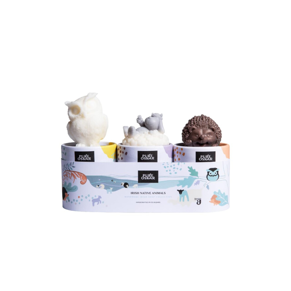 Pure Oskar Set of 3 Handmade Irish Soaps Barn Owl Little Lamb Busy Hedgehog Natural Moisturizing Ingredients Irish Gift Made in Ireland Gift-boxed