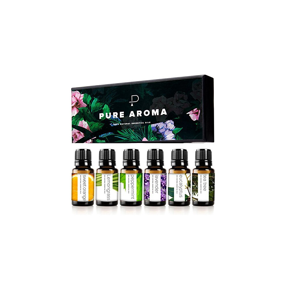 Essential Oils by Pure Aroma 100% Pure Therapeutic Grade Oils kit- Top 6 Aromatherapy Oils Gift Set-6 Pack, 10ML(Eucalyptus, Lavender, Lemon Grass, Orange, Peppermint, Tea Tree)