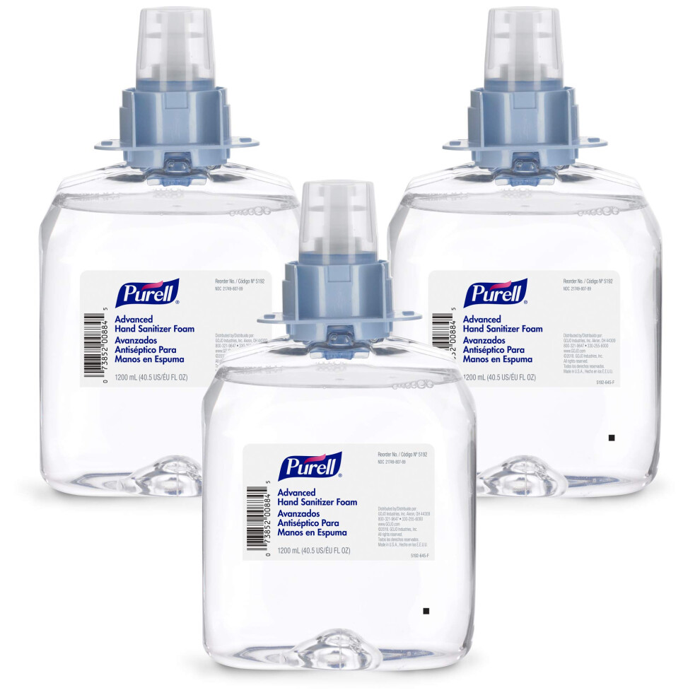 PURELL Advanced Hand Sanitizer Foam 1200 mL Foam Hand Sanitizer Refill for PURELL FMX-12 Push-Style Dispenser (Pack of 3) - 5192-03