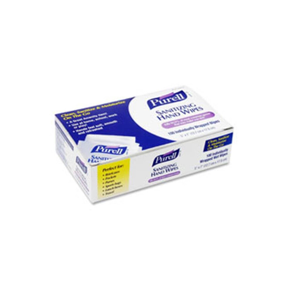 Purell 9022-10BX Premoistened Sanitizing Hand Wipes- 5 x 7- 100/Box