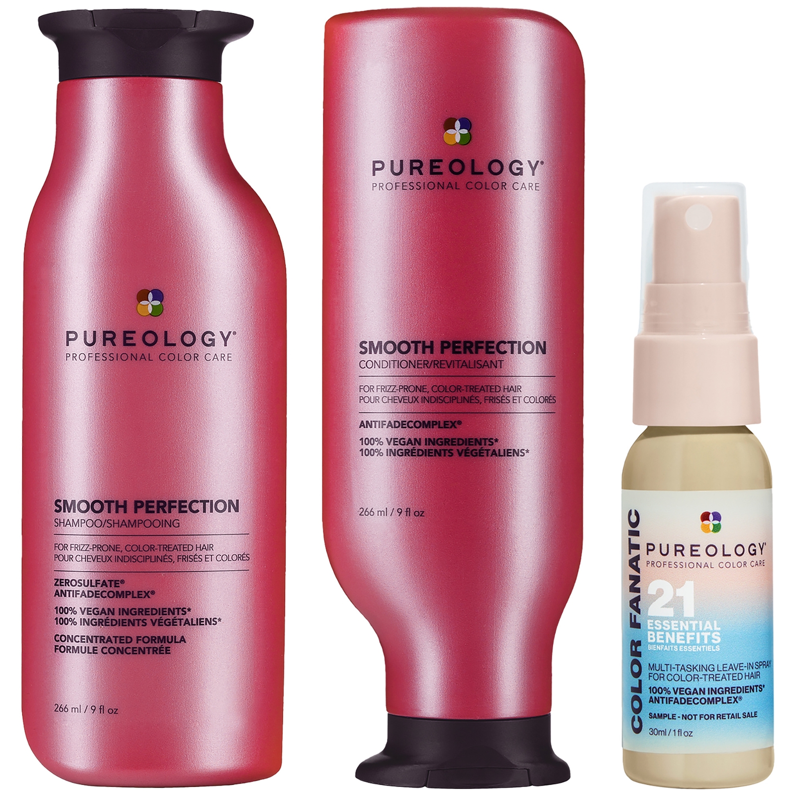Pureology Smooth Perfection Shampoo and Conditioner with Color Fanatic Bundle for Frizz Prone Colour Treated Hair