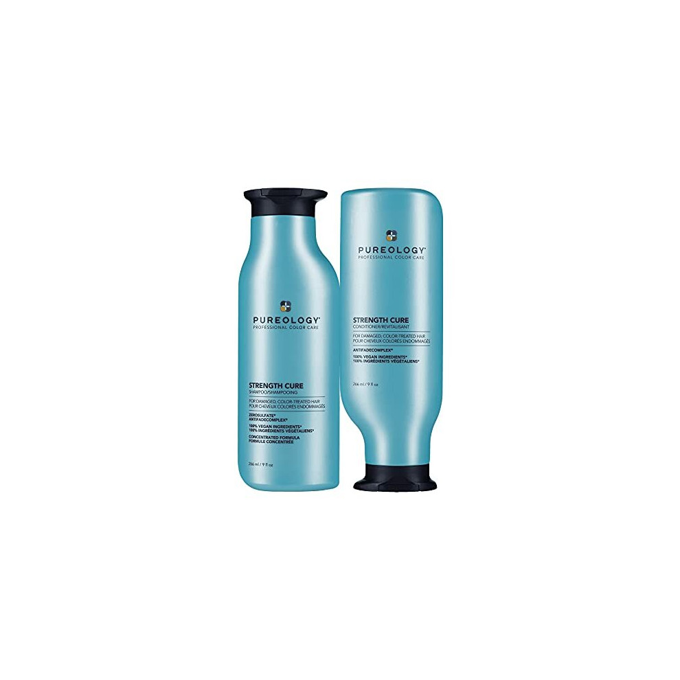 Pureology Strength Cure Shampoo and Conditioner Bundle for Damaged Hair, Sulphate Free for a Gentle Cleanse with Vegan Formulas