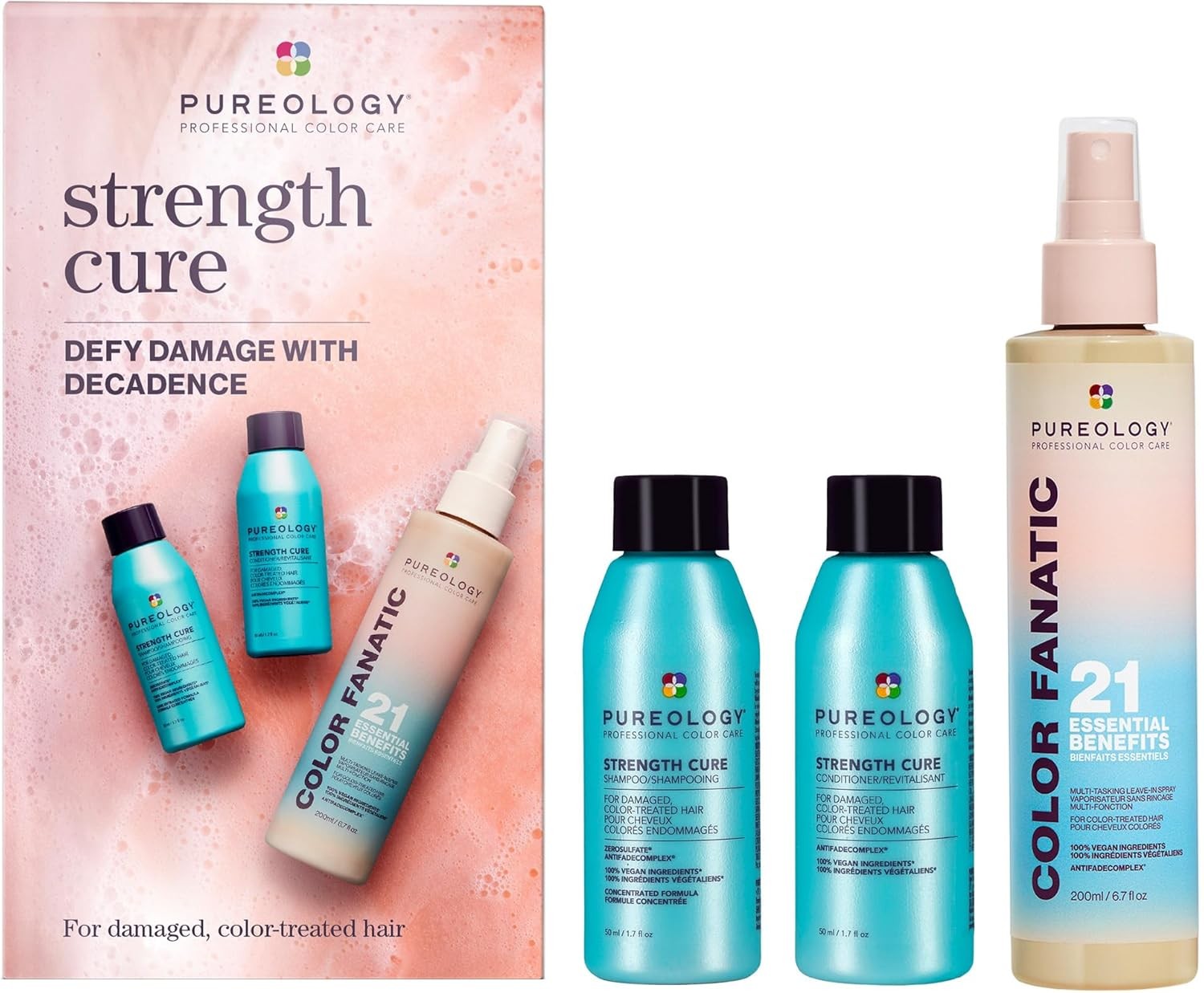Pureology Strength Cure Shampoo Conditioner and Color Fanatic Hair Gift Set for